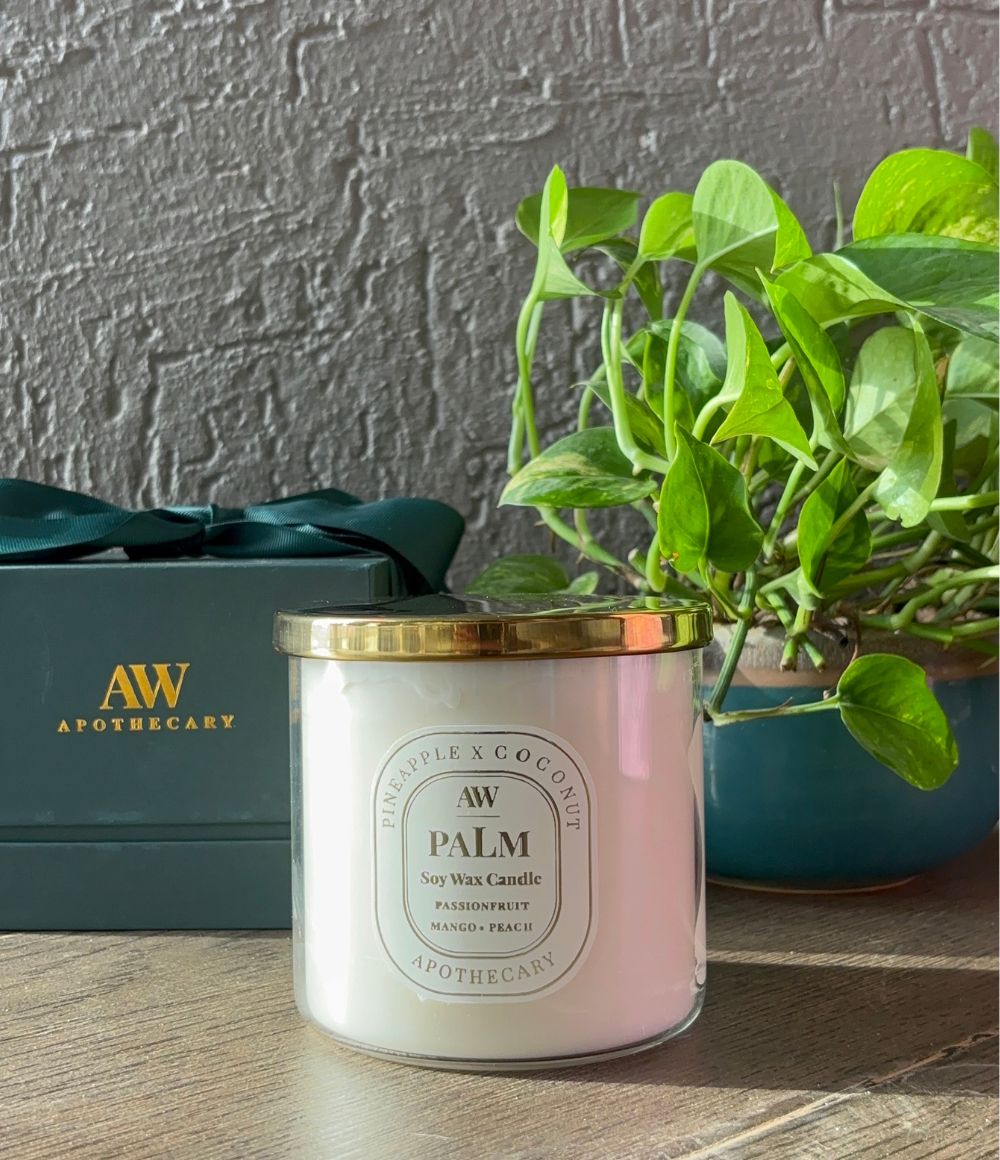 PALM is a reminder of slower days and warm sunshine. A blend of Pineapple, Coconut, Peach, Passionfruit, and Vanilla, PALM brings the feeling of a laid-back tropical holiday to your space.